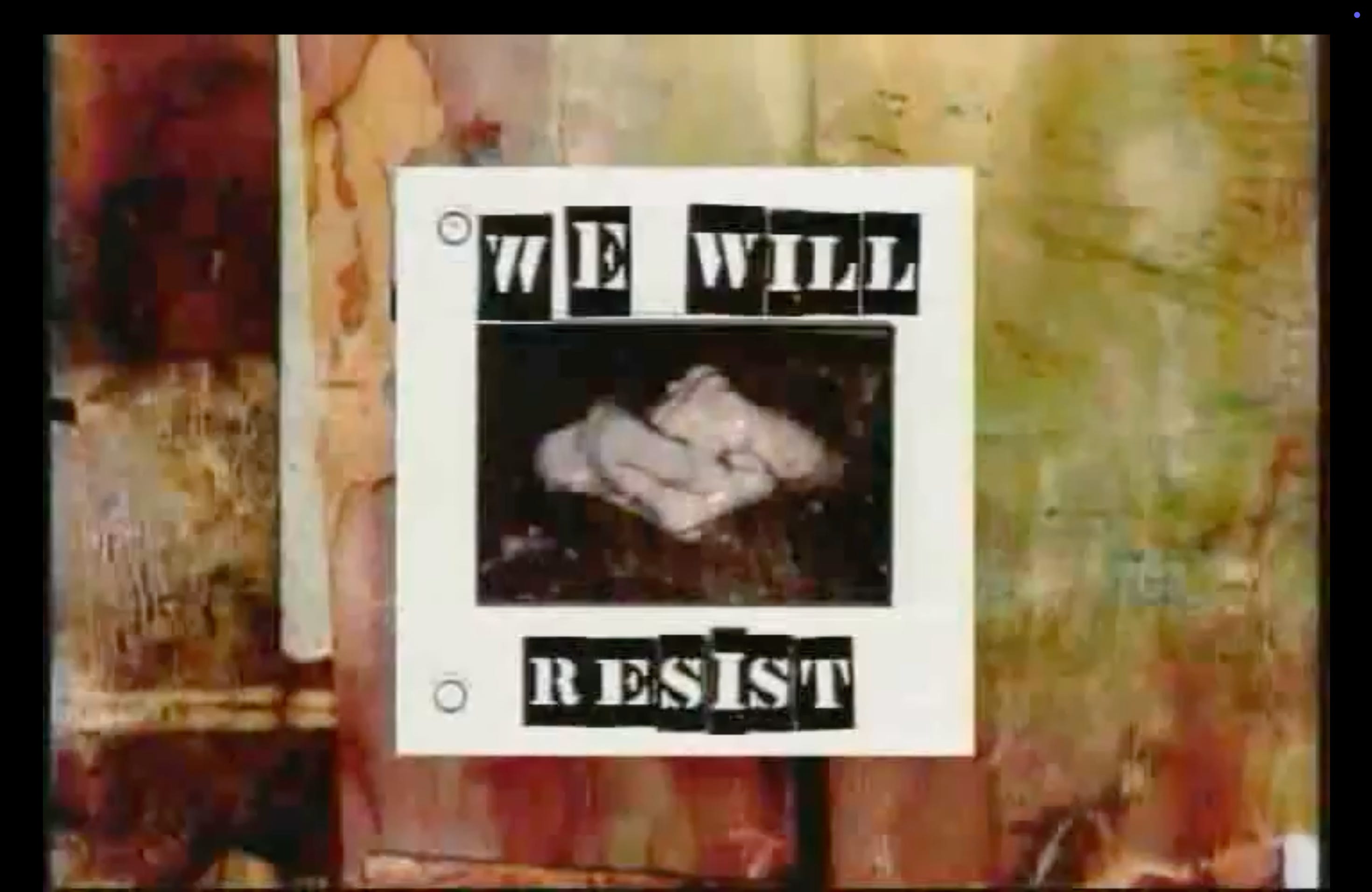 A favorite element of This is What Democracy Looks Like is its inclusion of two moments in which protest chants are reduced to single-word invocations, one in which, as seated and locked-arm protestors wait for the police to bear down on them with mace canisters, they begin to chant “COURAGE! COURAGE! COURAGE!” to shore up one another’s resistance.[3] The other is a collective cry simply of the word life again and again, “Life! Life! Life! Life!”, perhaps the most effective distillation one could imagine of the demands of the 50,000 person strong resistance movement—an insistence on life, on people over profit, against the death-dealing machine of globalization and capitalist imperialism.